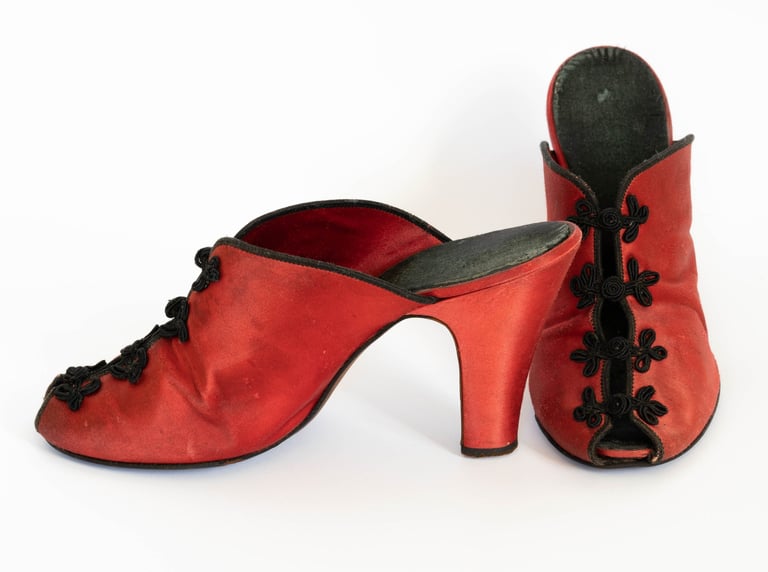Daniel Green continued adding new footwear styles specialising in luxurious but affordable slippers to be worn in the boudoir, while hostessing and even out of the house. Catalogues from the 1940s show elegant heeled slippers in satin or velvet often featuring a bow, pom pom or a rosette- the epitome of elegance in the boudoir. The company continues to this day making a wide variety of shoes and slippers.