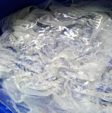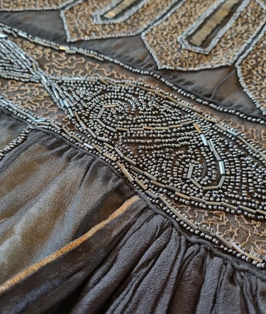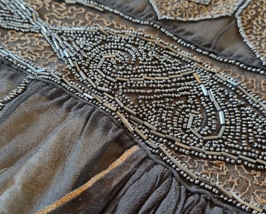 For antiques (pre 1920s) and special fabrics (velvet, beading, pre 1940s gelatin sequins, starch etc.) we advise not to wash at all, or to wash dirty areas at your discretion due to the risk of old silk shattering, beads rusting, or sequins melting.