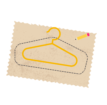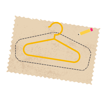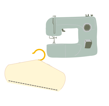 Make a pattern by tracing around the clothes hanger onto your paper. Make sure you give yourself a seam allowance plus extra room for the stuffing. When in doubt make it bigger than you think! We also like to make the bottom hem longer than necessary. Hot tip, write on your pattern what it is for and whether it includes your seam allowance or not.