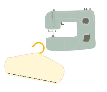 Slip your fabric cover over your padded clothing hanger. You may want to sew up the neck hole by hand to make it tidier. At this point you can decide either to leave the bottom hem hanging loose, hem it, or sew it together by hand or machine.