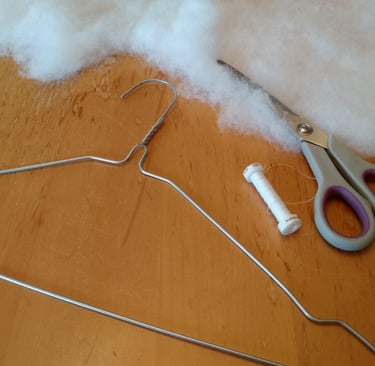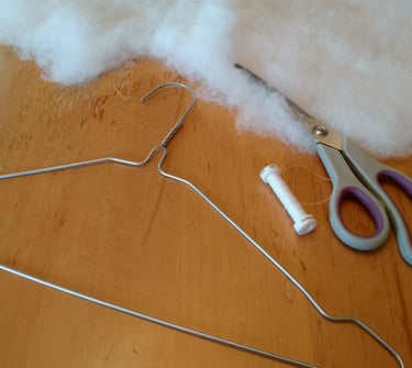 Prepare your hanger. Cut one or two lengths of dacron wadding, wide enough to fold over the two angled bars of your clothes hanger. Fold the dacron around the shoulders of your hanger.