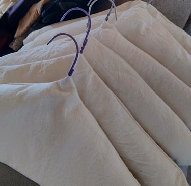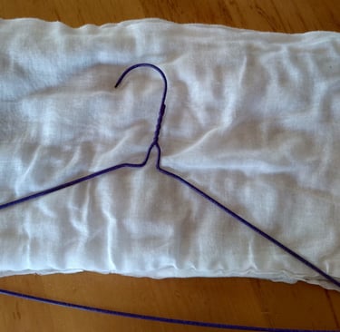 So why do we use wire hangers in this tutorial? Again thinking of preventive conservation, plastic, wood, and even pre-bought padded hangers are not as suitable for long term storage as,