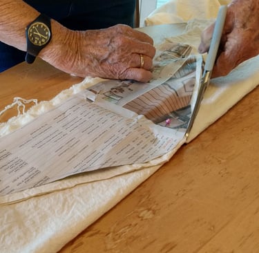 Preferably undyed and unbleached cotton calico (this can be bought in different thicknesses and we recommend a medium thickness/weight)- but you can also use sheets or pillowcases but preferable old ones that have had any chemical finishers stripped and won’t colour transfer dyes