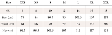 Secondly, we provide measurements of each garment laid flat, in metric centimetres (cm).