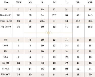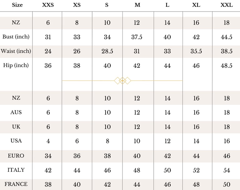 These charts are your guide to making a quick decision. But if you are not represented in this range or the garment is not your 'usual' size then make sure to check the garment's measurements.
