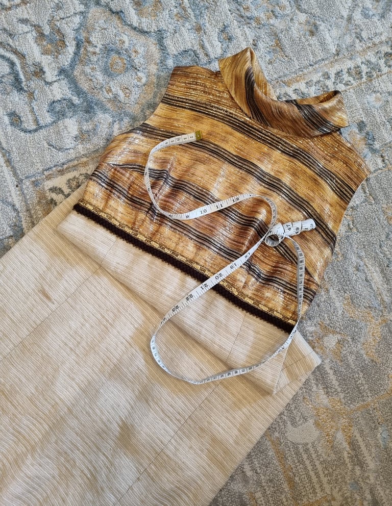 As the pieces we sell were made at different times with different practices and regulations guiding their sizing, it is difficult to assign a modern sizing system to them. Many homemade and couture pieces were made to custom fit the owner. So, to help you get the best fit possible, we're use two sizing methods.